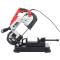 Scie à ruban avec base et mallette portable Acier La scie à ruban compacte et polyvalente avec une base en métal est un ensemble d'outil idéal pour scier des variétés de matériaux. La scie à ruban, en acier fort, est très durable. Le carénage en acier utilisable, les pare-chocs en plastique ainsi que la lampe de travail à LED permettent à l'utilisateur de résister aux travaux forts de construction sans dommage. La capacité maximale de 12,7 x 12,7 cm vous permet de couper les matériaux les plus courants tels que l'aluminium ou le bois en métal léger, le PVC et le téflon. Si vous devez couper du métal fort, avec une dureté supérieure à 40, comme l'acier, le fer, le cuivre et l'acier inoxydable, vous pouvez régler la vitesse de coupe au niveau inférieur-3 (environ 1 à 1,2 m / s). De plus, en équipant la scie d'une lame tranchante TPI 14 et d'une base en métal robuste, les performances de cette scie à ruban sont maximisées. Grâce à sa vitesse réglable, cette scie à ruban électrique est facile à utiliser et à manipuler. La livraison inclut une scie à main, une lame, une base métallique et une mallette moulée par soufflage. Ne laissez pas les enfants jouer avec l'appareil. Ce n'est pas un jouet. Seuls des opérateurs techniquement qualifiés peuvent utiliser l'outil. Portez un équipement de protection individuelle avant d'utiliser ce produit. Tenez les enfants et autres personnes à l'écart lorsque vous utilisez un outil électrique. ,