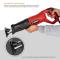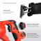 Le technologie innovante de la poignée rotative à 2 directions(gauche ou droite) assure votre travail efficace et pratique dans les situations diverses. Et pour la base d’appui, la longueur est orientable et l’angle réglable.LED intégrées dans le crochet pour une meilleure visibilité de la pièce travaillée, même dans des coins et recoins mal éclairés. Equipé d’une scie à bois 6T et l’autre scie à métal 14T. Le mandrin rapide permet un changement de lame facile et rapide sans aucun outil.