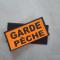 L autre bande s aggrippe a la première et est inscrite GARDE peche.