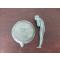 Hauteur : 13,5 cm, diamètre soucoupe : 9,5 cm, poids : 551 gr
