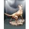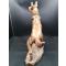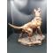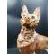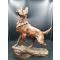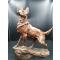 Cette œuvre figure un berger allemand à l’arrêt, grimpé sur un rocher. Oreilles dressées, le chien agile et élégant, porte un large collier que l’on imagine en cuir clouté. Sa posture est élancée et sa fourrure brillante.