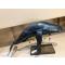L’originalité de la pièce réside également dans sa structure aérienne en fils tendus, qui soutient délicatement la sculpture. Ce dispositif minimaliste crée un effet d’apesanteur saisissant, donnant l’illusion que l’animal flotte dans l’espace, suspendu entre rêve et réalité.