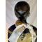 Le corset est patiné main, la jupe en tissu d’époque et le ruban en satin, fidèles à l’esprit du modèle original.