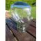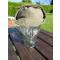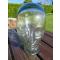 Tête de verre grandeur nature dans une couleur gris/vert transparente unique.