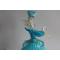 Sculpture en verre Murano, marquise en verre bleu et blanc, avec incrustations à la poudre d'or