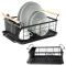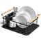 INDISPENSABLE EN CUISINE - Egouttoir à vaisselle aux dimensions de 42,5 x 29,5 x 19 cm. Il facilitera le séchage des couverts et assiettes lavés à la main et protégera le plan de travail de la cuisine. CONCEPTION SOLIDE - Le séchoir est en acier inoxydable noir. Équipé d'un plateau amovible en plastique noir de haute qualité. STYLE UNIVERSEL - Style minimaliste et couleurs sobres sont les caractéristiques de ce produit, grâce auquel il s'intégrera dans n'importe quel intérieur, créant un ensemble cohérent avec lui. Il est extrêmement beau dans une cuisine décorée dans un style classique, mais aussi moderne ou industriel. CAPACITÉ - L'égouttoir à vaisselle dispose d'un emplacement dédié pour les assiettes et les tasses. Équipé en outre d'un égouttoir à couverts amovible, qui peut être monté à l'intérieur ou à l'extérieur du sèche-linge. CONFORTABLE - Équipé de deux poignées en bois, qui le rendent facile à transporter et constituent en même temps un ajout intéressant soulignant l'aspect unique de l'égouttoir à vaisselle. Égouttoir à vaisselle compact avec poignées confortables. Le sèche-linge est spacieux, utile dans toutes les cuisines. Il est élégamment fini et fonctionnel en même temps. Facile à nettoyer. Il dispose d'un bac d'égouttage amovible, grâce auquel le garder propre n'est pas un problème. Le produit original de la marque Wilde. Fabriqué conformément aux normes européennes.