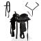 Selle, bridon et col de poitrine Cuir véritable 12 po NoirCette selle western est livrée avec un bridon assorti et un col de poitrine. Le cuir véritable de haute qualité et le cuir synthétique qui est décoré avec gaufrage floral font la selle décorative ainsi que fonctionnelle. La selle western est renforcée à tous les points de pression pour une durabilité accrue. Les étriers en cuir sont robustes et solides, tout comme la billette et la sangle. Cette selle est très confortable pour que le cheval et le cavalier puissent passer de longues heures sur la piste.