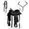 Selle, bridon et col de poitrine Cuir véritable 13 po NoirCette selle western est livrée avec un bridon assorti et un col de poitrine. Le cuir véritable de haute qualité et le cuir synthétique qui est décoré avec gaufrage floral font la selle décorative ainsi que fonctionnelle. La selle western est renforcée à tous les points de pression pour une durabilité accrue. Les étriers en cuir sont robustes et solides, tout comme la billette et la sangle. Cette selle est très confortable pour que le cheval et le cavalier puissent passer de longues heures sur la piste.