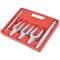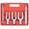 Séparateur de joint à rotule 17/23/28 mm pour services autoCe kit de séparateur / d'extracteur de joint à rotule est destiné à la fois aux travaux manuels et aux systèmes d'air pneumatiques pour le démontage des tirants, des joints à rotule et des assemblages de bras. Sont également inclus les adaptateurs de disjoncteur pneumatique nécessaires pour retirer et installer les rotules supérieures et inférieures lors des travaux d'entretien automobile. Il est fait de qualité professionnelle, ce qui est idéal pour plusieurs types de véhicules.