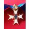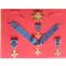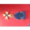 Au centre de la Médaille une main de fatma bleue et entre les branches de la Médaille, quatre croissants rouges. Le ruban est bleu bordé de rouge.