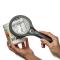 Par le modèle AS-95 de la nouvelle Série Lumé, la société Carson Optical vous offre une loupe à main d'un grossissement de 2x qui se caractérise d'abord par une lentille asphérique, des lampes de type COB LED très puissantes ainsi que par une petite lentille incorporée d'un grossissement de 7x. Les loupes équipées des lentilles asphériques assurent une puissance de grossissement plus forte et des images plus claires et nettes de l'objet désiré, tout en réduisant les zones floues qui se produisent normalement à la périphérie des images. Le modèle AS-95 est équipé d'une lentille grossissante avec un diamètre de 115 mm et trois lampes COB LED d'une très grande intensité lumineuse. Les recouvrements des lampes LED furent construit pour garantir une distribution homogène de la lumière à travers l'objet désiré sans aucun éclairage ponctuel ou effet d'éblouissement. En plus, en comparaison avec des lampes LED conventionnelles, les lampes de type COB LED offrent une intensité lumineuse plus élevée et une illumination plus homogène de l'objet regardé ; en même temps, elles se caractérisent par une consommation énergétique beaucoup plus réduite. En dehors de cela, la loupe modèle AS-95 est équipée d'un commutateur pour faire la sélection entre deux niveaux d'intensité lumineuse. Cette loupe à main est opérée à l'aide de deux piles AAA (non comprises dans la livraison). Le modèle AS-95 est l'outil idéal pour la lecture des textes en petits caractères ou pour l'utilisation dans les conditions lumineuses assez difficiles. Elle convient à toutes les défis de vos activités professionnelles ou de vos loisirs.