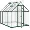 Serre avec cadre de base vert 224x169x195 cm aluminiumCette serre peut accueillir un nombre considérable de plantes et constitue une excellente solution pour protéger vos plantes du froid. Matériau robuste et résistant aux intempéries : le cadre de la serre est en aluminium résistant à la rouille et aux intempéries, ce qui lui confère une grande résistance au vent et une grande stabilité. Les panneaux latéraux en polycarbonate résistant aux UV sont légers, durables, faciles à entretenir et capables de résister au vent et à la neige.Conception pratique : ce cadre de serre est équipé d'un profilé inférieur en aluminium d'une hauteur de 6 cm qui peut être facilement enfoui dans le sol, ce qui permet d'économiser sur les coûts de base supplémentaires.Conception bien pensée : le système de gouttière intégré permet efficacement l'évacuation de l'eau et la fenêtre d'aération est conçue avec 5 angles réglables pour la circulation de l'air afin d'équilibrer l'humidité et la température. La porte battante vous permet également d'entrer plus facilement dans la serre pour une utilisation quotidienne.Grand espace de culture : la serre de jardin vous offre suffisamment d'espace pour cultiver une grande variété de plantes ou de cultures.Conception d'assemblage rapide : ce cadre de serre est doté d'un système d'assemblage rapide pour une installation efficace et rapide. Attention : La serre n'est pas un bâtiment de construction ou un jardin d'hiver destiné aux loisirs. Il s'agit d'une installation agricole autonome et non permanente, destinée uniquement au jardinage amateur. La serre n'est pas un bâtiment de construction ou un jardin d'hiver destiné aux loisirs. Il s'agit d'une installation agricole autonome et impermanente, destinée uniquement au jardinage amateur.