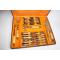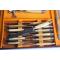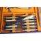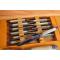 Service de 29 couverts par B. Côte, Lyon Service à découper, manche à gigot, couverts à salade, 12 couteaux de table et 12 couteaux à dessert manches en corne (bovin) et métal argenté avec écrin d'origine bon état
