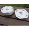 Ce joli service se compose de 8 assiettes plate a dessert octogonale a décors champêtre de fleurs bleu, ainsi qu'un plat a tarte du même décors.