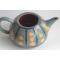 Service à thé en céramique émaillée attribué à Paul JACQUET (1882-1968), Annecy, Haute-Savoie 5 tasses et sous-tasses, une théière, un cremier et un pot à sucre quelques manques d'émail (notamment au décor jaune sur la théière), des éclats sous une sous-tasse, bouton du sucrier recollé, voir photos