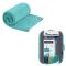 Il s'agit non seulement d'une serviette microfibre haut de gamme mais également d'une housse haut de gamme : housse optimisée avec aération et ouverture zip intégrale pour faciliter le rangement de votre serviette. Ouvrez la housse et sortez votre serviette : on a une serviette microfibre bouclette avec une longueur de 80 cm et une largeur de 40 cm. Repliez et stockez votre serviette dans sa housse : on obtient un volume total ultra compact (14 x 10 x 6 cm). L'ensemble ne pèse que 120 g. On peut réellement parler de serviette de voyage ou de serviette de randonnée avec le confort et la durabilité de la bouclette en prime. Coloris : bleu turquoise Baltic.