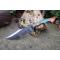 Lot de 2 Couteaux de Buschraft Randonnée à lames Fixes : Longueur totale du grand 29.5cm - Longueur de lame 18cm - Longueur totale du petit 19.5cm - Longueur de lame 9.50cm - Lames de type clip point - Lames en acier Carbone 1075 - Construction d'une seule pièce - Full tang - Manches en bois - Mitres en bois - Etui en cuir