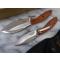 Les deux couteaux arborent un magnifique Manche Wood (Bois), offrant une prise en main chaleureuse et ergonomique. Cet ensemble est livré avec une housse nylon de transport "Combo" haute résistance, permettant de garder vos deux outils à portée de main sur un seul support de ceinture.