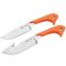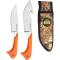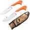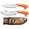 Set de 2 couteaux de chasse Outdoor Edge Duck Duo 2 Piece Combo Set 8Cr14MoV Blade TPR Handle Camo Nylon à lame fixe - Le skinner mesure 17.47cm - Longueur de lame 8.25cm - Le couteau à dépecer guthook mesure 18.41cm - Longueur de lame 9.52cm - Lame en acier 8Cr14MoV - Dureté 58-59HRC - Manche TPR orange avec trou à l'extrémité - Etui nylon camo