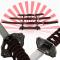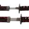 Chacun de ses katanas est délivré avec un fourreau dont les motifs sont inspirés du Japon et notamment des dragons rouges.