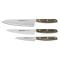Le set comprend trois couteaux fixes : un couteau d'office de 10 cm, un couteau de chef de 16 cm et un couteau de chef de 21 cm.