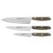 Les lames blanches contrastent élégamment avec les manches en bois naturel, réalisés en Ovengkol, un bois reconnu pour sa robustesse et son esthétique raffinée. Les manches pleine soie assurent une prise en main confortable et sécurisée, renforcée par des rivets en laiton qui ajoutent une touche de sophistication.