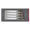 Boite de 4 couteaux à steak forgés Grand Maître de Victorinox cuisine Longueur de lame : 12 cm - lisse Lame en acier au chrome-molybdène X50CrMoV15 de haute qualité, forgée à Solingen, soumise à un double affûtage et à un contrôle de l'angle de coupe au laser. Lame forgée d'une seule pièce, uniformément trempée et parfaitement équilibrée. Tranchant Victorinox garanti Manche ergonomique et esthétique en palissandre avec les traditionnels 3 rivets.