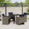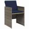 Set de 5 pièces de jardin avec coussins gris en poly rotinCet ensemble de chaises de jardin mixe parfaitement style et fonction pour vos moments en extérieur. Le poly rattan gris et les coussins navy créent un espace comfy pour dîner ou juste se relaxer avec des amis. Design Cool : Fabriqué en poly rattan gris tendance, cet ensemble s'adapte à tout en restant classe avec votre déco d'extérieur. Sièges Super Confort : Chaque chaise a des coussins épais en tissu résistant, vous offrant un coin cosy pour les repas ou la détente. Durabilité : Conçu en PE rattan et acier enduit de poudre, cet ensemble défie les éléments tout en gardant son look stylé année après année. Rangement Facile : Le dossier pliant permet un rangement rapide quand vous ne l'utilisez pas, gardant votre extérieur ordonné. Entretien Simple : Avec des housses de coussin amovibles, le nettoyage est super facile. Ainsi, votre mobilier reste frais et accueillant toute l'année.