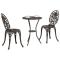 Set de Bistro de Jardin 3 Pièces en Aluminium Couleur BronzeCet ensemble repas extérieur combine charme traditionnel et design pratique. Il comprend une table ronde et deux chaises, parfaites pour les moments tranquilles sur ton balcon ou patio. Fait en fonte robuste, il a fière allure et dure longtemps, ce qui en fait un choix top pour tes espaces extérieurs, que ce soit pour un dîner ou juste profiter d'un après-midi tranquille. Durabilité : Fait en fonte, cet ensemble est super solide et construit pour durer, te permettant de profiter de nombreux repas en extérieur sans soucis. Design traditionnel : Son look classique avec une finition usée ajoute une élégance intemporelle à tout espace extérieur, parfait pour lier les amis et la famille. Résistant aux taches : Le nettoyage est un jeu d'enfant grâce à ses détails résistants aux taches. Juste un coup d'éponge avec un chiffon humide le garde en bon état pour ton prochain repas. Adaptabilité aux intempéries : Cet ensemble de mobilier est fait pour l'extérieur et résiste à différents temps, s'assurant qu'il reste un incontournable dans ton jardin ou sur ton balcon. Dimensions : Sa taille compacte est parfaite pour les petits espaces extérieurs, s'adaptant facilement à deux personnes, en faire un super choix pour des dîners intimes.