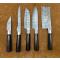 Set de Boucher composée de 4 couteaux de différentes tailles + Feuille de boucher lame en acier damas 256 couches manche en bois d'ébène