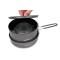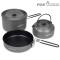 Le set de cuisson comprend 3 pièces : une poêle, une casserole moyenne et une bouilloire de 0,9 l. Nous avons épaissi les parois en aluminium de la poêle et des casseroles afin de permettre une finition antiadhésive de haute qualité. Comme nous le savons tous, de nombreuses poêles actuelles des entreprises de pêche prétendent être antiadhésives, mais jusqu'à quel point le sont-elles vraiment ? Nous croyons que notre antiadhésif est le meilleur que vous trouverez dans un magasin de matériel de pêche.