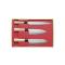Le set de couteaux SekiRyu comprend trois modèles distincts : le Santoku, le Deba et le Sashimi, chacun conçu pour des tâches spécifiques en cuisine. Le Santoku, avec une longueur totale de 290 mm, se prête parfaitement aux opérations de tranchage et d'éminçage grâce à sa lame lisse et son émouture asymétrique. Le couteau Sashimi, mesurant 330 mm, est idéal pour la découpe précise de poissons et de viandes, tandis que le Deba, d'une longueur de 285 mm, est robuste et adapté pour désosser et préparer le poisson.