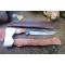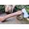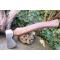 Longueur totale 33cm - Longueur de la lame 6cm - Longueur de la tête 11cm - Lame en acier carbone 1055 - Manche en bois - Etui cuir - Fabrication artisanale - Idéal pour la survie & le buscraft