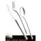 Couverts de table en acier 18/10 à finition satinée avec pierre cubique en oxyde de zirconium de Bohême, épaisseur 5 mm, Composition : 6 couteaux de table. 6 cuillères table. 6 fourchettes de table. 6 cuillères à café. Fabriqué en Italie
