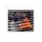 Les pièces sont en lame inox et manche polymère couleur orange, tranchant lisse et dentelé,