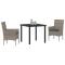 Set de jardin 3 pièces avec coussins en poly rattan grisCet ensemble de salle à manger de jardin est parfait pour les moments en extérieur, alliant style et praticité. La finition grise chic et les surfaces noires apportent une touche moderne à ton patio ou balcon. Cadre Solide : Fait avec un cadre en acier revêtu de poudre, cet ensemble garantit durabilité et stabilité dehors. Coussins Confortables : Chaque chaise a des coussins en polyester résistants aux intempéries pour les repas prolongés à l'extérieur. Looks Modernes : Le design rectangulaire s'accorde avec différents styles extérieurs, parfait pour jardins et balcons. Résistant aux Intempéries : Le poly rattan synthétique résiste aux éléments, et les housses des coussins se nettoient facilement. Taille Compacte : Bien qu'il soit spacieux, c'est un ensemble compact pour balcons et petits patios, super pour la vie en ville. Maximum 110 kg par siège. Soyez conscient du risque de feux ouverts et d'autres sources de forte chaleur à proximité du produit.