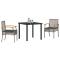 Set de jardin de 3 pièces avec coussins en poly rotin grisCe duo de chaises de jardin allie confort et style, parfait pour les repas en extérieur ou juste pour chiller sur votre patio. Fait avec des matériaux robustes comme le rotin PE et des coussins épais, ces chaises vous offrent le combo parfait de détente et d'élégance pour vos espaces extérieurs. Matériau durable : Fait en rotin PE, cet ensemble est pratique pour les meubles d'extérieur, imitant le rotin naturel tout en étant léger et facile à nettoyer. Confort : Chaque chaise a des coussins épais qui améliorent votre expérience, rendant vos moments dehors vraiment agréables. Housses amovibles : Les coussins ont des housses amovibles et lavables, ce qui rend l'entretien facile et garde votre mobilier de jardin au frais. Cadre stable : Avec un cadre en acier revêtu de poudre, ces chaises sont solides et résistent aux intempéries pour une utilisation durable à l'extérieur. Style moderne : La finition grise tendance combinée aux détails en bois naturel donne une touche contemporaine à n'importe quel extérieur, rehaussant l'apparence de votre patio ou balcon. Maximum 110 kg par siège.