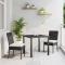 Set de jardin de 3 pièces en poly rotin noirCet ensemble de chaises de jardin est un super ajout à n'importe quel espace extérieur. Avec un design moderne, il va illuminer votre patio, terrasse ou balcon. Fait en poly rattan costaud, ces chaises sont pas seulement belles mais aussi résistantes aux intempéries, idéales pour des repas en plein air et pour se détendre. Ajout stylé : Le design épuré et la couleur noire chic améliorent n'importe quel cadre extérieur, ajoutant une touche contemporaine à votre espace. Sièges confortables : Chaque chaise est dotée d'un coussin crème doux, vous permettant de profiter de longs repas et rassemblements sans gêne. Durabilité : Fait en poly rattan résistant aux intempéries et avec des cadres robustes en acier enduit de poudre, ces chaises sont conçues pour durer sans trop d'entretien. Légères et faciles à déplacer : La construction légère permet un déplacement facile, ce qui les rend parfaites pour divers rassemblements extérieurs. Design compact : Idéales pour les petits espaces extérieurs tout en étant suffisamment stylées pour les plus grands, ces chaises offrent une excellente solution de places assises pour toutes les occasions. Maximum 110 kg par siège. Soyez conscient du risque de feux ouverts et d'autres sources de forte chaleur à proximité du produit.