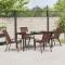 Set de jardin 5 pièces marron en textilène et acierCet ensemble de repas de jardin 5 pièces est parfait pour des moments sympas en extérieur, alliant style et praticité. Avec son design moderne en acier marron et noir, il améliore l'atmosphère de n'importe quel espace extérieur tout en offrant des sièges confortables pour les repas, la détente ou juste profiter de l'air frais. Construction solide en acier : Fait en acier résistant, cet ensemble supporte le mauvais temps. Son cadre costaud est parfait pour tous vos repas à l'extérieur et un usage quotidien. Assises confortables pour quatre : Avec quatre chaises fournies, c'est top pour des petites réunions, offrant beaucoup d'espace pour manger et discuter. Finition en poudre robuste : La couche de finition donne un style sympa et évite la rouille, s'assurant qu'il reste en bon état tout en gardant un look moderne. Design agréable et pratique : Avec des accoudoirs plats et un dossier solide, c'est parfait pour s'asseoir longtemps, rendant vos repas encore plus agréables. Idéal pour l'extérieur : Cet ensemble est fait pour déconner dehors, transformant n'importe quel balcon ou patio en un super endroit pour manger pour jusqu'à quatre personnes.
