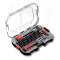 Boîtier verrouillable en polycarbonate, avec zones aimantées pour organiser vis et ressorts.
