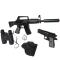 Le kit comprend une mitraillette et un pistolet factices pour l'apprentissage des gestes de sécurité, accompagnés d'un holster pratique pour le transport du pistolet.
