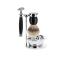 Set de rasage en 4 parties avec bol, manches en résine noir avec accents en métal chromé :