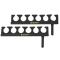 Supports avec six empreintes (diam 40mm). Peuvent se fixer à différents niveaux sur la barre principale GUNKI: trous prévus à cet effet et/ou sur le pas de vis des pieds principaux de la barre GUNKI.