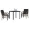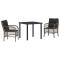 Set de salle à manger de jardin 3 pièces avec coussins gris en rotin synthétique.Cet ensemble de salle à manger de jardin a un look moderne, fait en rattan poly gris qui améliore vraiment n'importe quel espace extérieur. Parfait pour les patios, les balcons ou les terrasses, les chaises confortables avec des coussins gris créent une super ambiance pour les repas et la détente. Siège Confortable: Les coussins épais offrent une expérience de siège top, idéale pour les repas à l'extérieur ou juste flâner. Profite d'heures passées dehors avec des amis et de la famille sur ces chaises accueillantes. Durabilité: Fabriqué en rattan PE solide, cet ensemble de jardin est conçu pour affronter les intempéries tout en gardant son look. Ses caractéristiques résistantes garantissent une longue durée de vie et peu d'entretien. Entretien Facile: Avec des housses de coussins amovibles et lavables, le nettoyage est ultra simple. Dézippe, passe en machine, et voilà ! Cadre Robuste: Le cadre en acier revêtu assure qu'il tienne bien, garantissant la sécurité. La combinaison des matériaux assure que le mobilier dure des années. Taille Idéale: Mesurant 58,5 x 67 x 86 cm, cet ensemble s'adapte bien aux petits espaces tout en laissant de la place pour dîner. Le design polyvalent s'intègre facilement dans différentes zones extérieures. Maximum 110 kg par siège. Soyez conscient du risque de feux ouverts et d'autres sources de forte chaleur à proximité du produit.