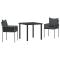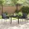 Set de salle à manger de jardin de 3 pièces avec coussins noirs en poly rotinCet ensemble de deux chaises de jardin noires a une ambiance chill et une touche moderne, parfaites pour ton patio ou ton coin de jardin. Fabriquées en rattan synthétique de haute qualité et montées sur un cadre en acier enduit de poudre, ces chaises sont non seulement belles dehors, mais elles peuvent aussi affronter le mauvais temps, te garantissant qu'elles resteront super dans ta déco extérieure. Ces chaises de jardin sont parfaites pour le plaisir en extérieur, stylées et confortables, idéales pour des journées ensoleillées ou des soirées sous les étoiles. Le rattan synthétique résistant aux intempéries garde tes meubles en excellent état, peu importe la météo. Avec des sièges denses et des dossiers supportants, tu peux te détendre après une longue journée, parfait pour les moments entre amis ou des soirées tranquilles. Le cadre en acier revêtu de poudre offre un soutien solide avec une capacité de 110 kg, garantissant la sécurité et la fiabilité pour un usage extérieur. Faciles à nettoyer : un coup d'éponge avec un chiffon humide suffit pour que tes chaises de jardin restent belles et prêtes à l'emploi. Maximum 110 kg par siège. Soyez conscient du risque de feux ouverts et d'autres sources de forte chaleur à proximité du produit.