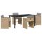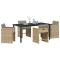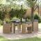 Set de salle à manger de jardin 5 pièces avec coussins en poly rotin beige.Cet ensemble de salle à manger de jardin crée une ambiance cosy pour se détendre et manger, donnant tout de suite une meilleure vibe à ton espace extérieur. Son design moderne avec sa finition beige mixte est top pour les petites réunions ou des repas tranquilles, parfait pour les cuisines familiales ou les patios de jardin. Construction Solide: Le cadre en acier très solide assure qu'il reste en forme, même par tous les temps. Il est suffisamment dur pour résister à l'usure quotidienne, gardant ton ensemble de salle à manger dans ton jardin. Résistant aux Intempéries: Fait de matériaux qui tiennent le coup, pour que tu puisses profiter de tes repas dehors sans te soucier de la décoloration ou des dégâts. La surface en rotin synthétique est jolie et faite pour être à l'extérieur. Coussins Confortables: Chaque chaise a des coussins d'extérieur confortables pour un long moment de détente. Les housses amovibles simplifient le nettoyage, maintenant ton ensemble comme neuf. Style Moderne: Avec son design épuré, cet ensemble de salle à manger embellit l'apparence de n'importe quel espace extérieur. Sa finition beige mixte avec des détails noirs ajoute une touche de style. 4 Places: Idéal pour les petites réunions, cet ensemble peut accueillir jusqu'à quatre personnes confortablement, le rendant parfait pour les repas en famille ou pour faire plaisir à des amis. Sa forme rectangulaire est faite pour les petits espaces. Maximum 110 kg par siège.