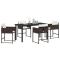Set de salle à manger de jardin 5 pièces avec coussins en poly rotin marronCe jeu de salle à manger de jardin est un super mélange de style et de confort. Avec un design qui s'intègre facilement à n'importe quel espace extérieur, il est parfait pour des retrouvailles familiales ou entre amis. L'ensemble comprend des chaises confortables et une grande table, rendant vos repas en extérieur vraiment agréables, que ce soit sur la terrasse, le balcon ou dans le jardin. Profitez de repas en extérieur faciles avec une table robuste et des sièges confortables. Fait en rattan PE résistant aux UV, donc il ne s'estompe pas au soleil. Les chaises ont des coussins épais pour un vrai luxe lors des repas. Conçu pour un rangement pratique, les chaises se plient facilement quand on ne les utilise pas. Les housses de coussin sont zippées et peuvent passer à la machine, super facile à nettoyer. Maximum 110 kg par siège. Soyez conscient du risque de feux ouverts et d'autres sources de forte chaleur à proximité du produit.