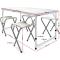 Ce set est idéal pour vos sorties dans la nature, vos séjours en camping ou vos moments de détente sur votre balcon ou votre terrasse. Il comprend une table blanche en MDF de 120 x 60 cm, qui peut supporter 30 kg et dont la hauteur est réglable entre 54 cm, 61 cm et 70 cm, et quatre chaises blancs de 3,5 x 25,5 x 32,5 cm, qui peuvent supporter 80 kg. Le cadre gris argenté en aluminium rend le tout facile à nettoyer, à plier et à transporter. Ce set s'harmonise avec tous les environnements et tous les décors grâce à son design sobre et élégant. Il vous permet de profiter d'un espace convivial et agréable pour partager un plat ou une boisson rafraîchissante avec vos proches