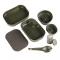 L´original dispose de tout qui est nécessaire et pourtant économisant l´espace. Se compose d´assiette avec couvercle, gobelet, tasse pliante, salière et poivrière et spork.