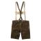 Le short est muni de poches en biais, une poche couteau et une poche arrière. La ceinture et les bretelles sont en cuir retourné.